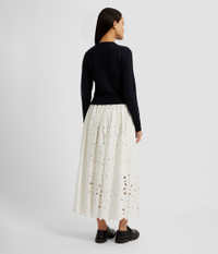This navy cardigan is knitted from lightweight merino wool. Shaped for a close fit, its classic silhouette is enhanced by feminine draping and decoration at the collar. Wear it with everything from tailored trousers to printed skirts. Size and Fit This cardigan has a crew neck with draped detailing, long sleeves, and ribbed trims. It button fastenings through the centre front. Fits true to size. Model is 5'10" and wears a size UK 6. Fabric and Care 100% Wool. Embroidery: 60% Glass, 20% Brass, 20% Copper. Do Not Machine Wash / Delicate Dry Clean / Do Not Bleach / Do Not Tumble Dry / Cool Iron On Reverse.