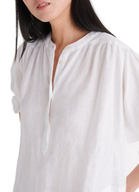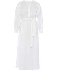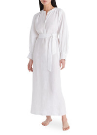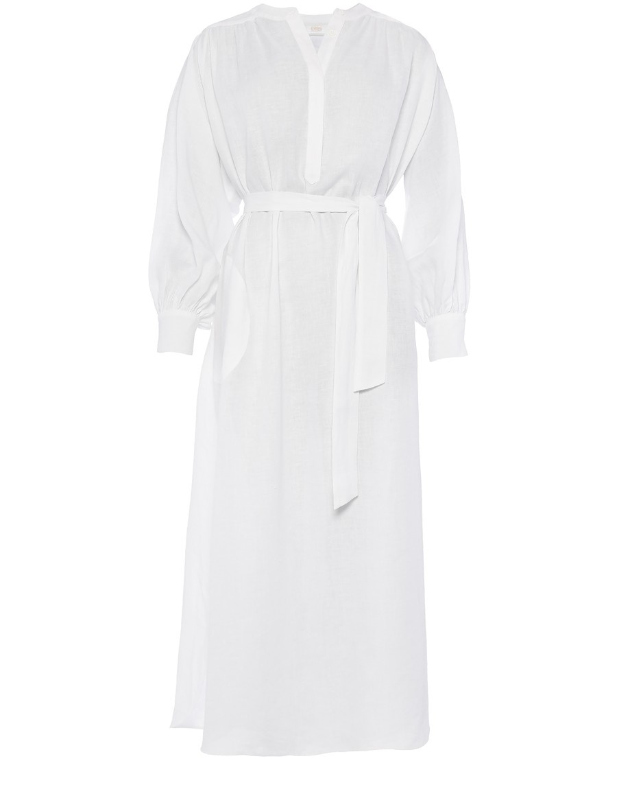 DESCRIPTION - Long dress - Long sleeves - Hidden front button placket - Loop on neck - Shoulder insert with shirring - Removable belt without loop - Two side pockets - Ankle length DETAILS AND CARE MATERIAL: Main fabric : 100% Linen COLOR: blanc COUNTRY OF MANUFACTURE: Bulgaria PRODUCT CODE: ERER2NVZWHT1T1AA00