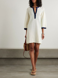Albatros open-knit cotton-blend mini dress Ecru
