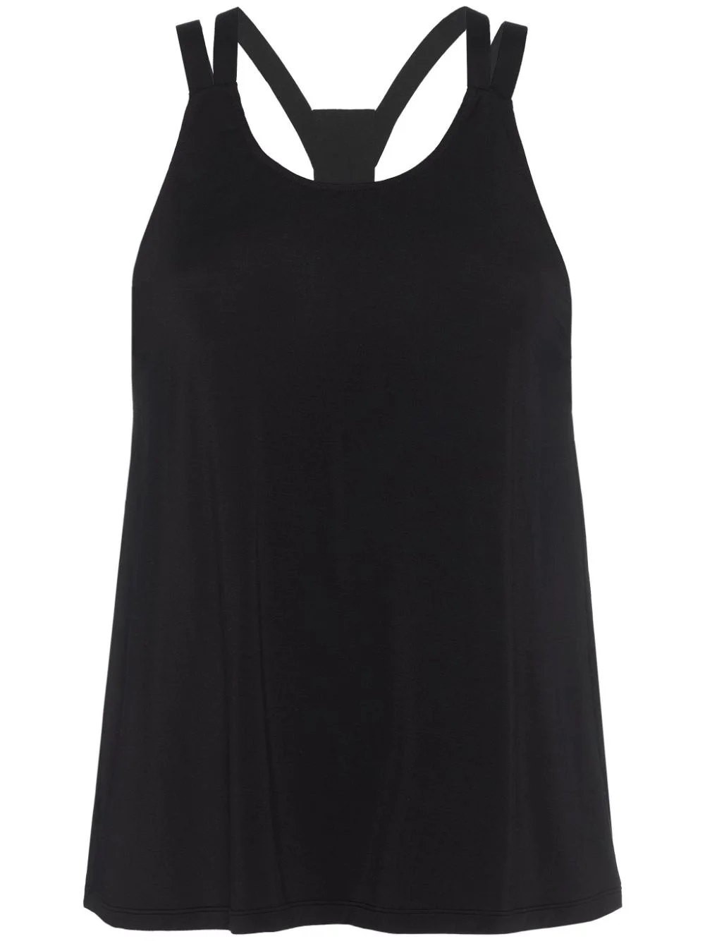 Allyson tank top Highlights - Black - Modal-silk blend - Jersey texture - Fluid - Round neck - Double-strap design - Sleeveless - Racerback with strap detailing - Small tonal embroidered logo to the rear - Straight hem Made in Italy Composition Modal 77%, Silk 15%, Elastane 8%