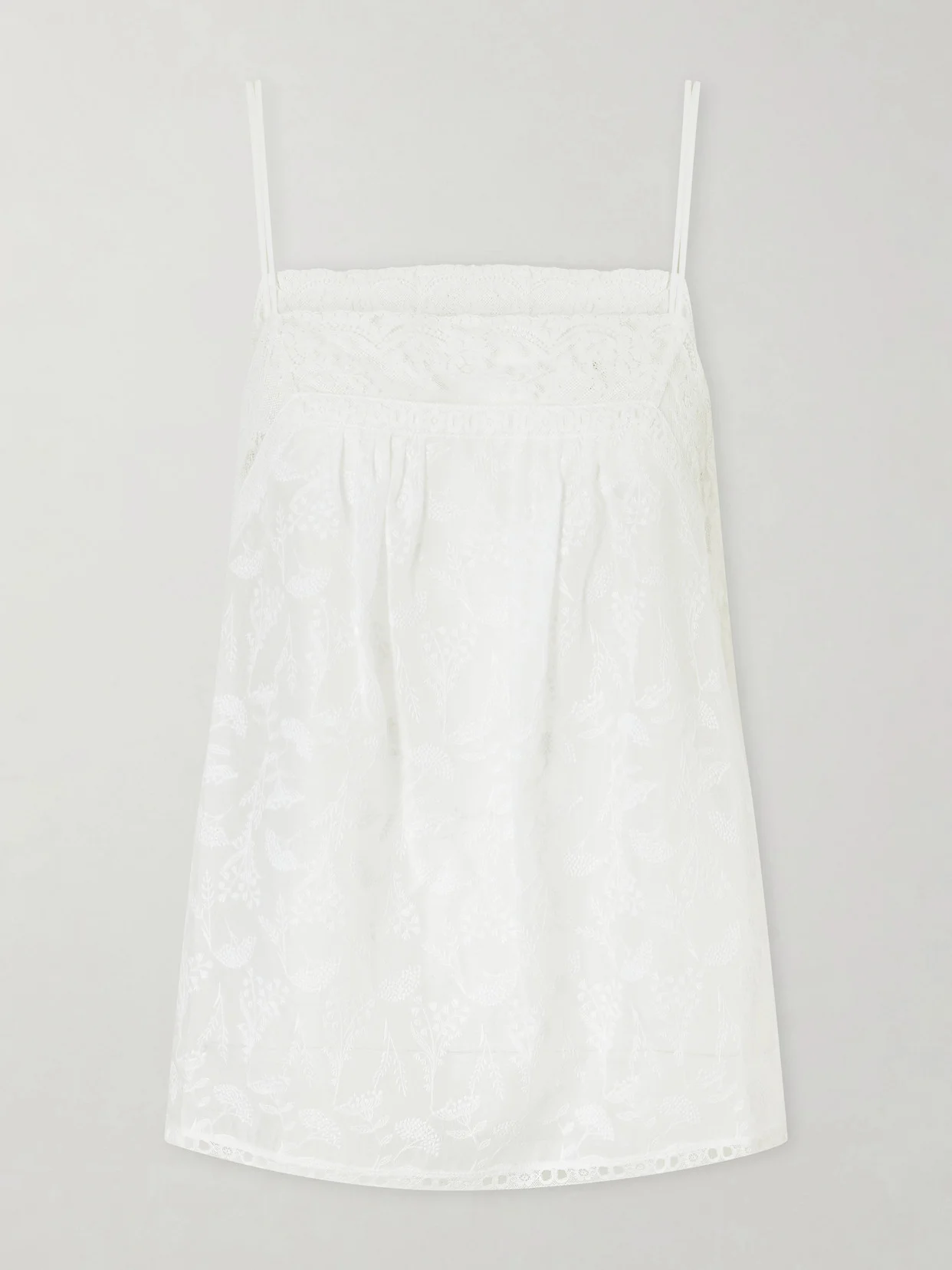 Amande Embroidered Lace-trimmed Cotton-blend Voile Top
