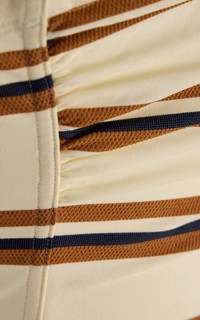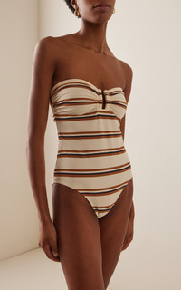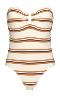 Eres' swimwear is made from the label's incredibly flattering 'Peau Douce' fabric that's designed to sculpt your frame and retain its shape through wash and wear. One-piece bustier swimsuit, center bust shirring at front and sides, U-shaped metal link between cups, gripper tape. The novel striped print of this line is reminiscent of both nautical T-shirts and deckchair canvases. PRODUCT DETAILS - Slip on - Composition: 82% polyamide, 18% elastane - Designer color: Fine Sand Stripe - Machine wash - Made in Italy SIZE & FIT - Fits small to size, take one size larger than normal - Designed for moderate coverage