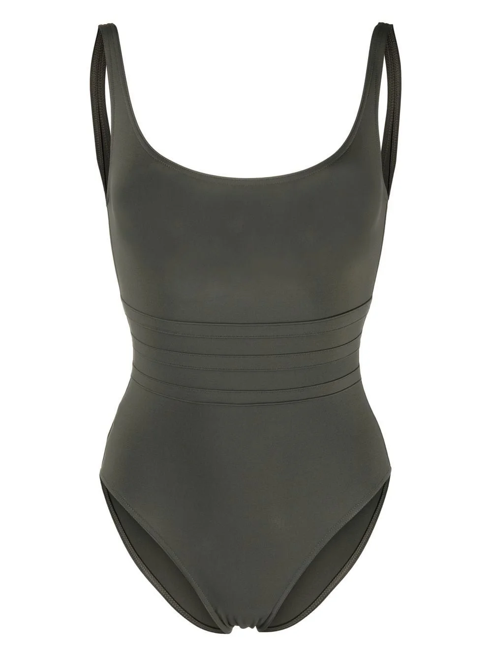 panelled-waist swimsuit khaki stretch-design panelled bodice scoop neck low back thin straps medium coverage Be mindful to try on swimwear over your own garments. Made in France Composition Polyamide 77%, Elastane 23% SIZE & FIT Measurement BUST 29.13 in(74 cm) LENGTH 29.13 in(74 cm) Washing instructions Machine Wash
