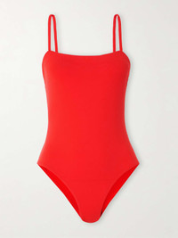 EDITORS'NOTES Feeling confident on vacation is easy if you invest in a well-made swimsuit. This 'Aquarelle' one-piece by Eres is cut from its signature sculpting peau douce fabric and has a square neckline and thin straps. Its minimalist look allows for endless styling options. SIZE & FIT - Fits small to size, take one size larger than normal - Medium brief coverage - Model is 175cm/ 5'9", bra size 32B and is wearing a size FR 38 DETAILS & CARE - Red stretch-polyamide - Pulls on - 84% polyamide, 16% spandex - Machine wash - Lotion, sunscreen, oil and chlorine can cause discoloration of this item; this is not a manufacturing defect. Please follow care instructions to keep your swimwear in the best condition Small to size. See Size & Fit notes