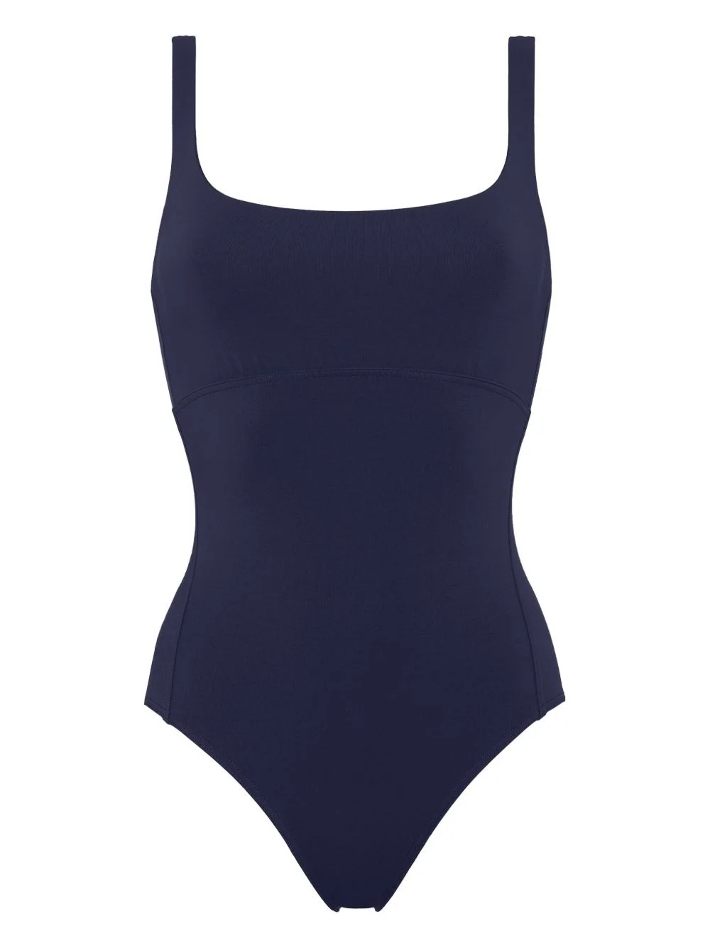 Arnaque swimsuit Highlights - Navy blue - Square neck - Be mindful to try on swimwear over your own garments. Made in France Composition Polyamide 84%, Spandex/Elastane 16% SIZE & FIT FittingInformation Designed to offer medium brief coverage This piece fits small – take one size up