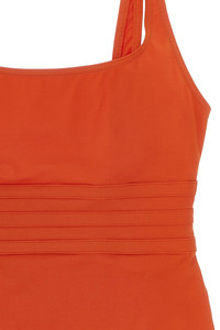 cod. 011401ROOIBOS 'Asia' one-piece swimsuit in Peau Douce* fabric with wide straps, square neckline at the front, round neckline at the back, and bands at the waist to define the silhouette. Color: Orange Size & Fit: True to size fit - ERES size Composition: 84% polyamide, 16% elastane Made in: Italy