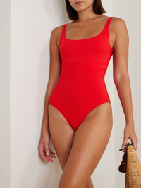 EDITORS'NOTES Eres' innovative peau douce fabric feels super soft yet retains its shape when wet. Made in France, this 'Asia' swimsuit from the 'Les Essentiels' collection has a rounded neckline, low scoop back and discreet sculpting panels at the waist to accentuate your figure. It's ideal for swimming a few lengths before relaxing poolside. SIZE & FIT - Fits small to size, take one size larger than normal - Medium brief coverage - French sizing DETAILS & CARE - Red stretch-polyamide - Pulls on - 84% polyamide, 16% spandex; lining: 68% polyamide, 32% elastane - Hand wash - Lotion, sunscreen, oil and chlorine can cause discoloration of this item; this is not a manufacturing defect. Please follow care instructions to keep your swimwear in the best condition Small to size. See Size & Fit notes.