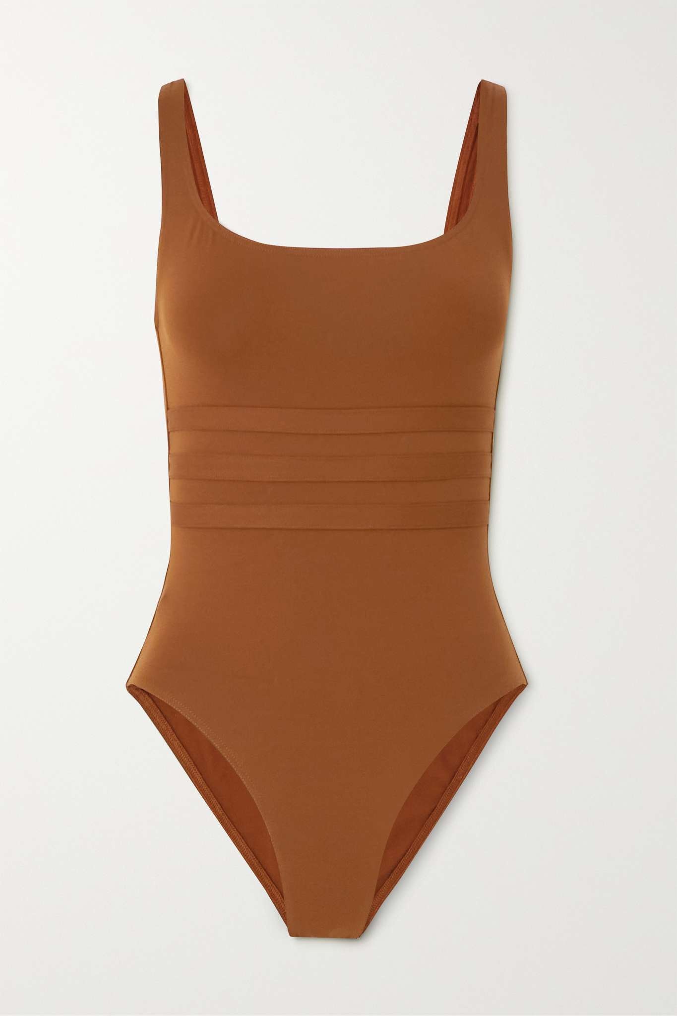 EDITORS'NOTES Eres' innovative <i>peau douce</i> fabric feels super soft yet retains its shape when wet. This 'Asia' swimsuit from the 'Les Essentiels' collection has a rounded neckline, low scoop back and discreet sculpting panels at the waist to streamline your silhouette. It's ideal for swimming a few lengths before relaxing poolside. SIZE & FIT - Fits small to size, take one size larger than normal - Those with a long torso may wish to take a further size up - Medium brief coverage - Model is 175cm/ 5’9”, bra size 32B and is wearing a size FR 38 DETAILS & CARE - Rust stretch-polyamide - Pulls on - 77% polyamide, 23% elastane - Machine wash Small to size. See Size & Fit notes.