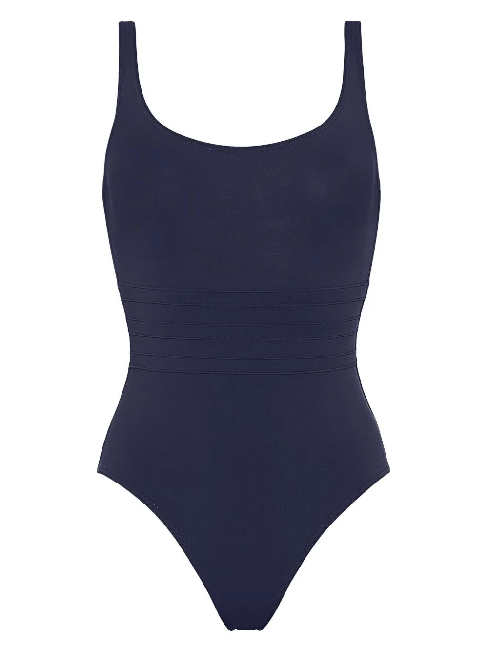 Asia swimsuit Highlights - Navy blue - Pull-on style - Stripe detailing - Scoop neck - Be mindful to try on swimwear over your own garments. Made in France Composition Polyamide 84%, Spandex/Elastane 16% SIZE & FIT FittingInformation This piece fits small – take one size up