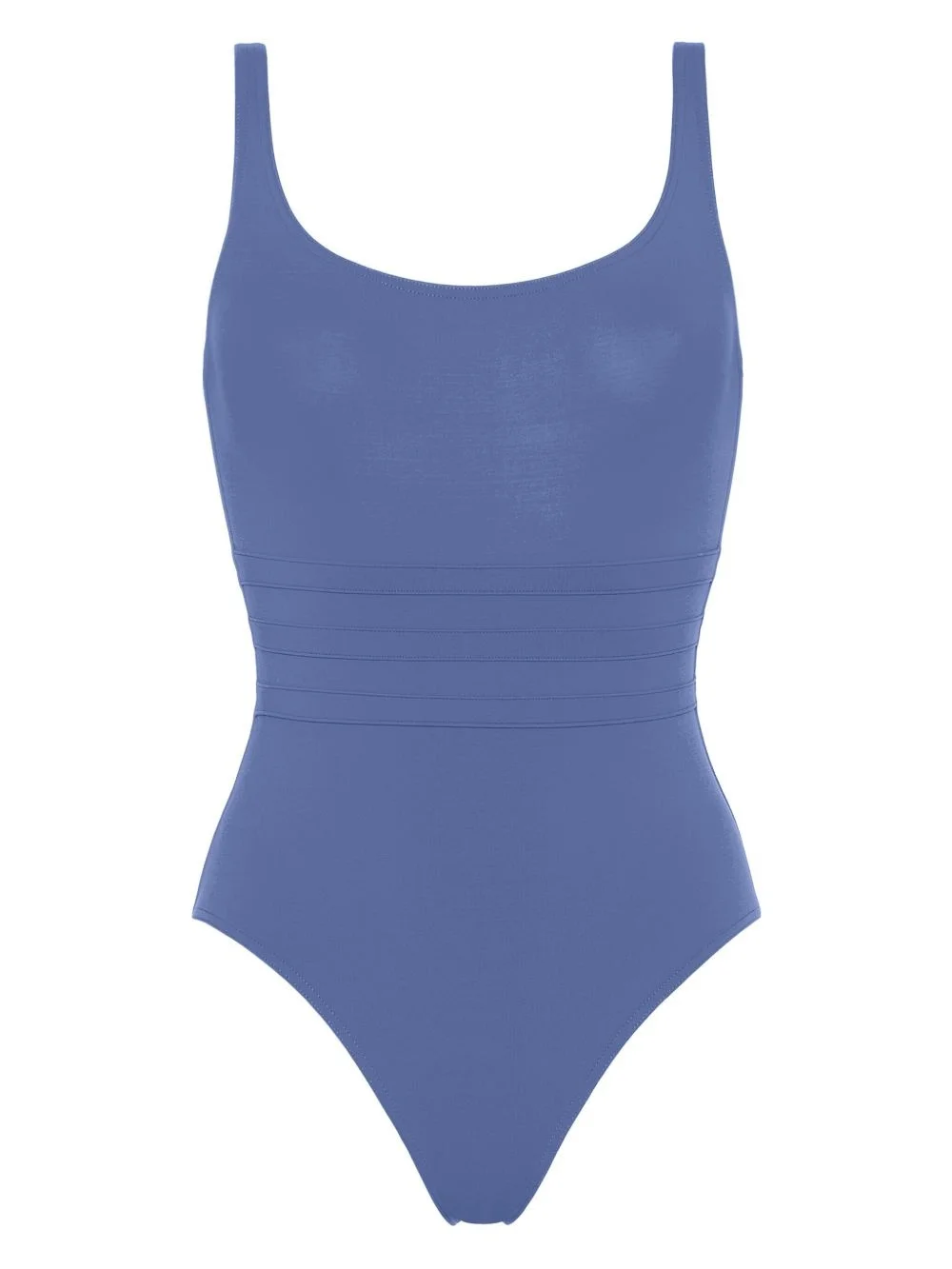 Asia swimsuit Highlights - Lavender blue - Stretch-design - Open back - Scoop neck - Be mindful to try on swimwear over your own garments. Made in France Composition Polyamide 84%, Spandex/Elastane 16% SIZE & FIT FittingInformation This piece fits small – take one size up