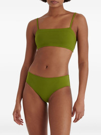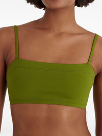 Azur bikini top Highlights - Green - Spaghetti straps - Seamless design - Square neckline - Minimalistic style - Lightweight construction - Be mindful to try on swimwear over your own garments. Made in France Composition Polyamide 84%, Spandex/Elastane 16% SIZE & FIT FittingInformation Designed to fit close to the body, offering minimal flexibility and movement Made from a lightweight stretch fabric, this piece offers elasticity and flexibility when worn This piece fits small – take one size up