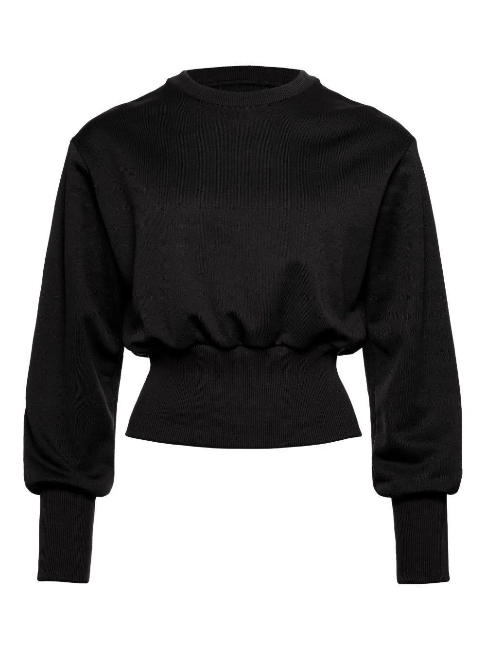 Isadora sweatshirt Highlights - Black - Crew neck - Bishop sleeves - Peplum hem - Cropped design Made in Italy Composition Polyamide 62%, Cotton 38% Washing instructions Machine Wash