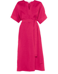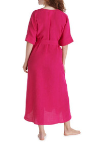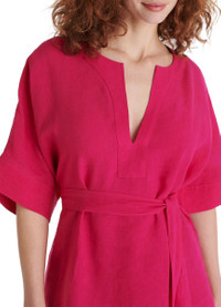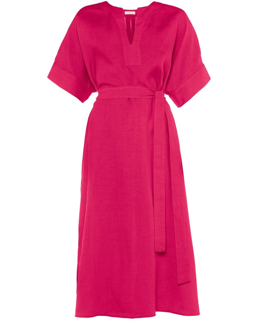 DESCRIPTION - Kaftan - Short sleeves - Neckline and bottom sleeves inserts - Pleated back - Removable belt without loop - Rounded slits on each side at the bottom - Length above ankles DETAILS AND CARE MATERIAL: Fabric 1 : 100% linen COLOR: smile COUNTRY OF MANUFACTURE: Bulgaria PRODUCT CODE: ERE49853PINLLLLL00