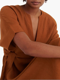 Bibi midi dress Highlights - Brown - Detachable belt - Side slits - V-neck - Short sleeves Imported Composition Linen/Flax 100%