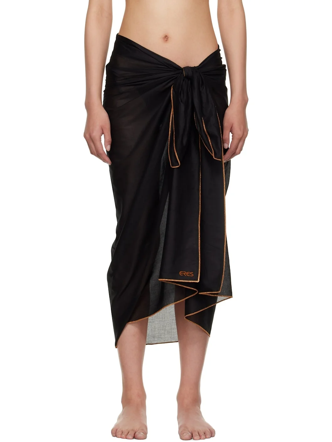 Semi-sheer cotton voile cover-up. · Wrap construction · Metallic thread detailing at edges · Logo bonded at hem Supplier color: Noir 100% cotton. Made in Bulgaria 252780F102001