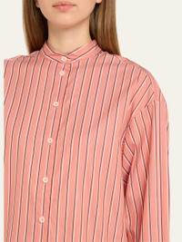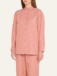 Eres "Bonheur" striped sleep shirt in cotton Band collar; button front Long sleeves Button cuffs Back yoke with inverted pleat Rounded side slits Relaxed fit Cotton Made in Bulgaria