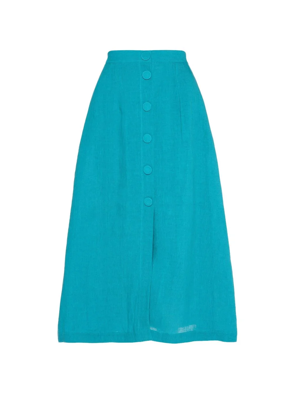 button amusante skirt Highlights - Blue - Front button fastening - A-line Imported Composition Linen/Flax 100% Washing instructions Machine Wash