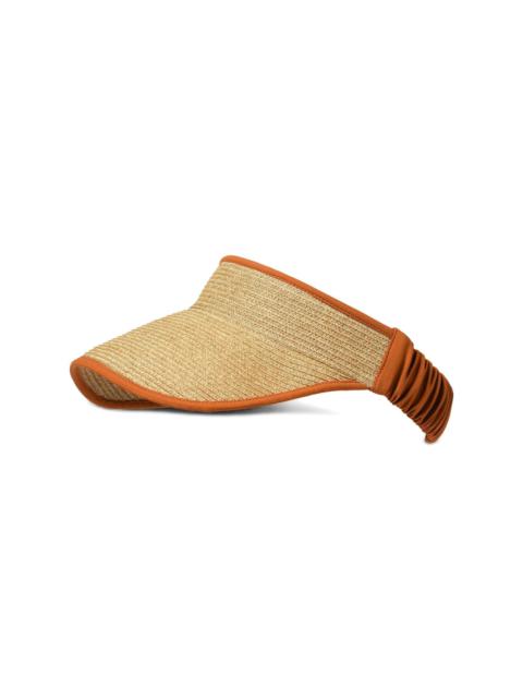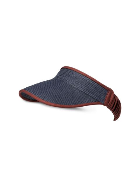 Carla visor Highlights - Blue - Elasticated band - Curved peak - Contrasting trim Made in Italy Composition Paper 85%, Polyester 15% Washing instructions Do Not Wash/Do Not Dry Clean