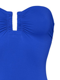 Cassiopee bustier swimsuit Highlights - Electric blue - Stretch-design - Bustier-style neckline - Ruched detailing - Tonal stitching - Be mindful to try on swimwear over your own garments. Made in Italy Composition Polyamide 84%, Spandex/Elastane 16% SIZE & FIT FittingInformation Designed to offer medium brief coverage This piece fits small – take one size up Washing instructions Machine Wash