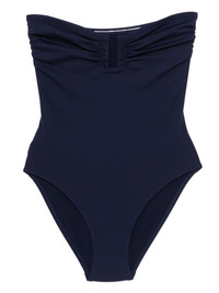 Cassiopee swimsuit Highlights - Navy blue - Bandeau style - Off-shoulder - Be mindful to try on swimwear over your own garments. Made in Italy Composition Polyamide 84%, Elastane 16%