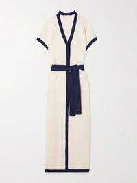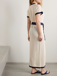 Bayadere Chavire belted two-tone open-knit cotton-blend maxi dress Ecru