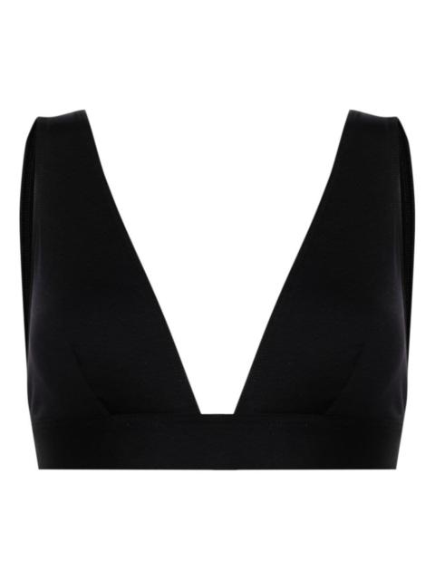 Chrome bikini top Highlights - Cornflower blue - Rear hook fastening - Wide shoulder straps - Triangle cup - Be mindful to try on swimwear over your own garments. Made in France Composition Polyamide 84%, Spandex/Elastane 16% SIZE & FIT FittingInformation Designed to fit close to the body, offering minimal flexibility and movement Made from a lightweight stretch fabric, this piece offers elasticity and flexibility when worn This piece fits small – take one size up