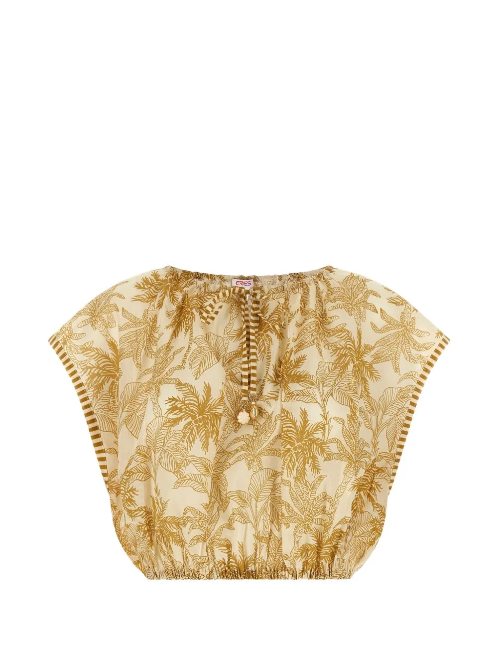 Crocodile patterned top Highlights - Beige and yellow - Palm-tree print - Round neck - Short sleeves - Elasticated hem - Drawstring detail Imported Composition Cotton 100% Washing instructions Read Manufacturer Guidelines