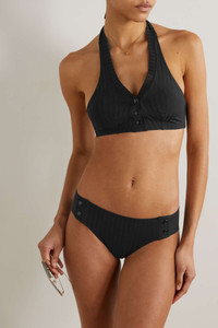 EDITORS'NOTES You've booked the tropical resort, now all you need is Eres' swimwear to take with you. These 'Paradise Daiquiri' bikini briefs are made from ribbed stretch fabric, so they'll naturally contour your body. The mid-rise cut provides the perfect amount of coverage. SIZE & FIT - Fits small to size, take one size larger than normal - Mid-rise briefs with medium coverage - Model is 179cm/ 5'11" and is wearing a FR 38 DETAILS & CARE - Black stretch-polyamide - Lined at base - 90% polyamide, 10% elastane - Hand wash - Lotion, sunscreen, oil and chlorine can cause discoloration of this item; this is not a manufacturing defect. Please follow care instructions to keep your swimwear in the best condition