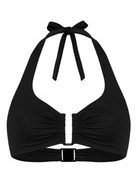 Dedicace bikini top Highlights - Black - Rear tie fastening - Rear hook fastening - Draped detailing - Be mindful to try on swimwear over your own garments. Made in Italy Composition Polyamide 84%, Spandex/Elastane 16% SIZE & FIT FittingInformation This piece fits small – take one size up