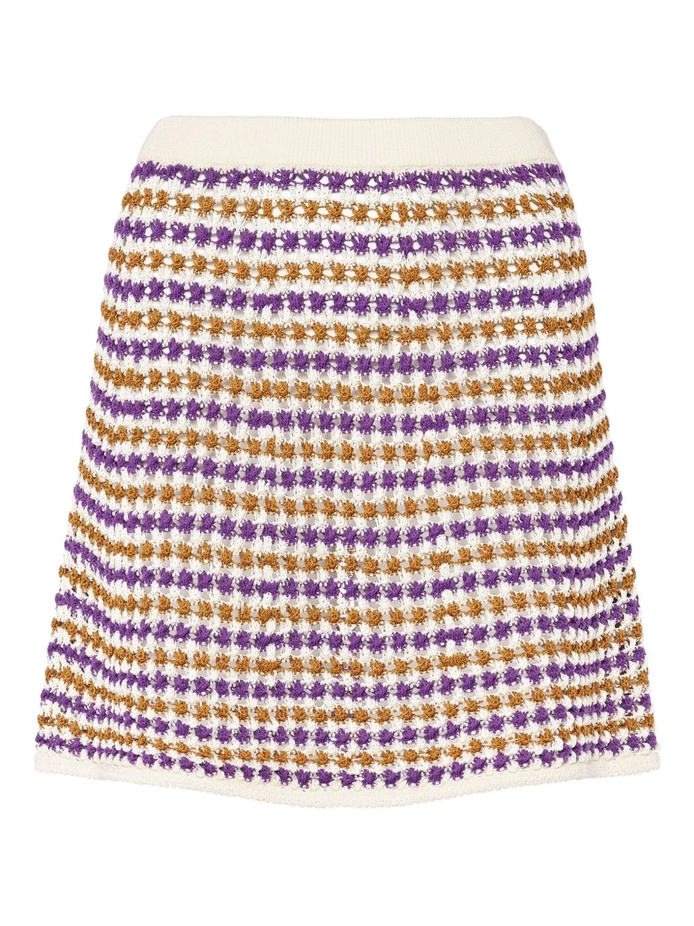 Design knitted A-line mini skirt Highlights - Purple - Orange - Knitted - Ribbed waistband - Striped pattern Made in Italy Composition Cotton 60%, Viscose 40% Washing instructions Machine Wash