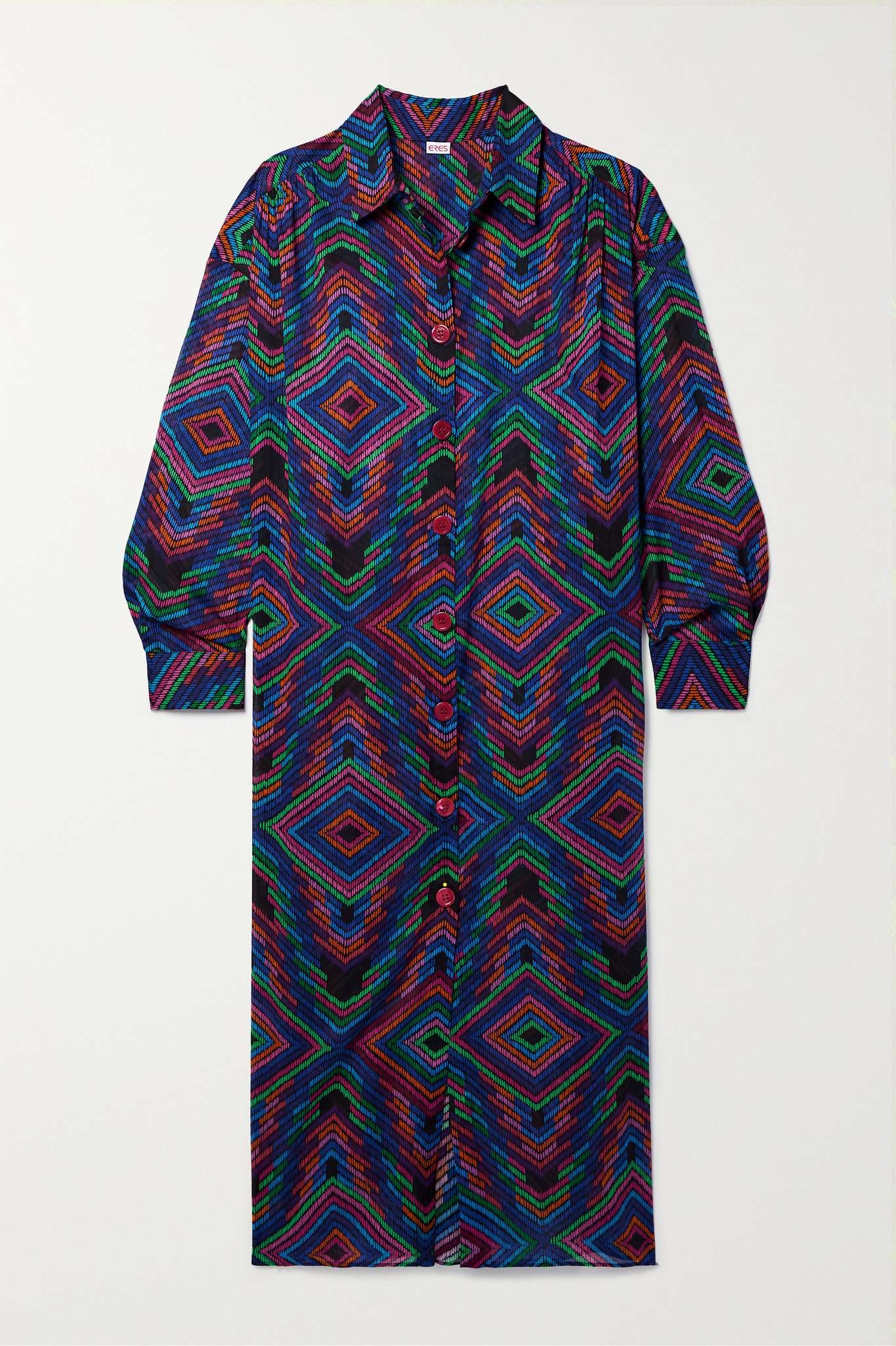 EDITORS'NOTES Perfect for your next sun-soaked getaway, Eres's 'DJ' shirt dress takes you from the pool to al fresco lunches. It's made from semi-sheer cotton-voile and printed with the mesmerizing 'Arc-En-Ciel' motif reminiscent of what you might see inside of a kaleidoscope. SIZE & FIT - 1 = S/M - 2 = M/L - 3 = L/XL - Fits true to size, however those who are between sizes should take the larger size - Cut for a relaxed fit - Lightweight, non-stretchy fabric - Model is 177cm/ 5'10" and is wearing the designer's size 1 DETAILS & CARE - Multicolored cotton-voile - Button fastenings through front - 100% cotton - Machine wash