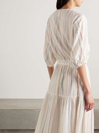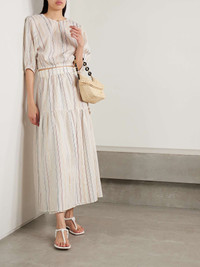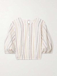 Eres' 'El Dorado' top is meant to be worn with the coordinating 'Brillante' skirt in our edit - together, they make the ultimate summer set. Made from cotton-blend voile, it's patterned with shimmering rainbow stripes and has elasticated cuffs and a cropped hem. Size & Fit - Fits true to size, take your normal size - Cut for a slightly loose fit - Elasticated at the hem - Lightweight, non-stretchy fabric - Model is 180cm/ 5'11" and is wearing a size Small Model measurements: - Bust: 79cm/ 31" - Waist: 61cm/ 24" - Hip: 89cm/ 35" Details & Care - Multicolored cotton-blend voile - Button-fastening keyhole at front - 85% cotton, 10% viscose, 3% metallic fibers, 2% polyamide; lining: 100% cotton - Unlined - Machine wash or dry clean