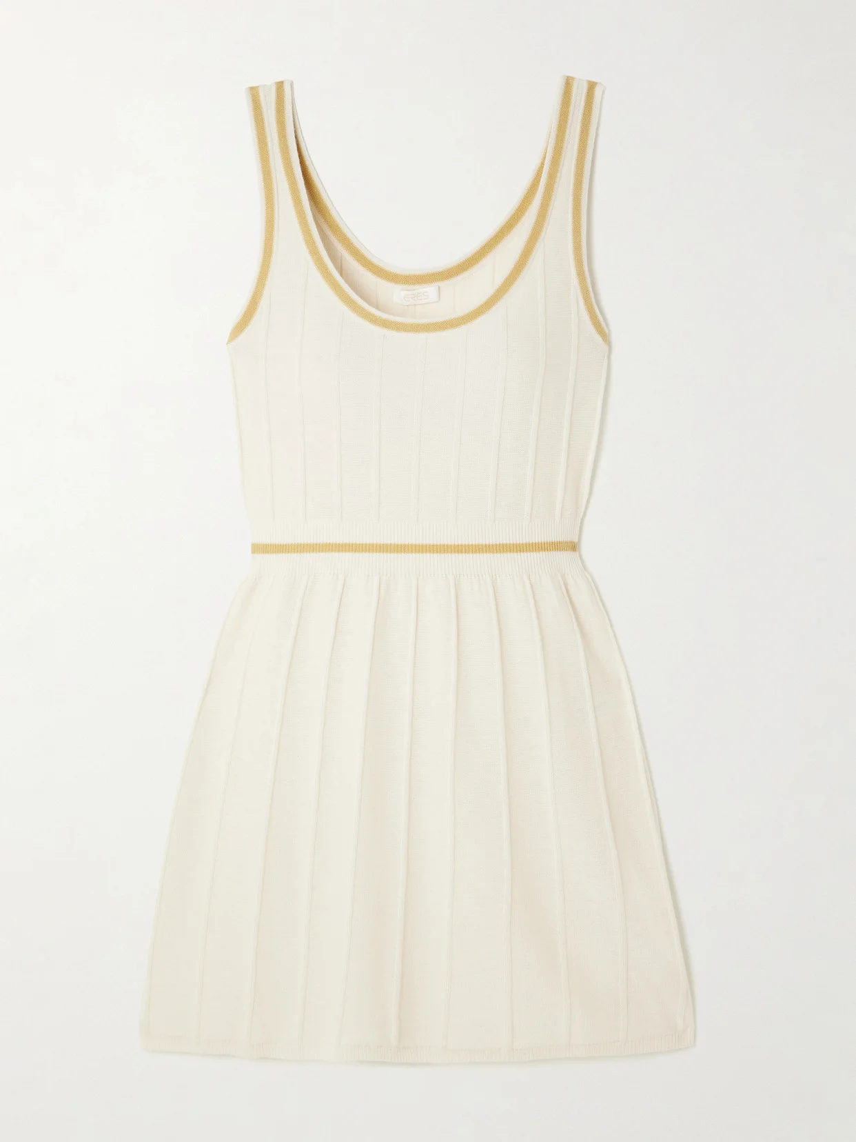 Eres' 'Elite' mini dress takes its cues from traditional cricket whites, with raised seams from the shoulders to the hem. It's knitted from sumptuous wool and cashmere-blend and striped along the neck, arms and waistband.