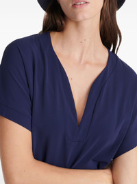 Emy tunic Highlights - Navy blue - Split neck - Flutter sleeves - Pull-on style Made in France Composition Polyamide 94%, Spandex/Elastane 6%