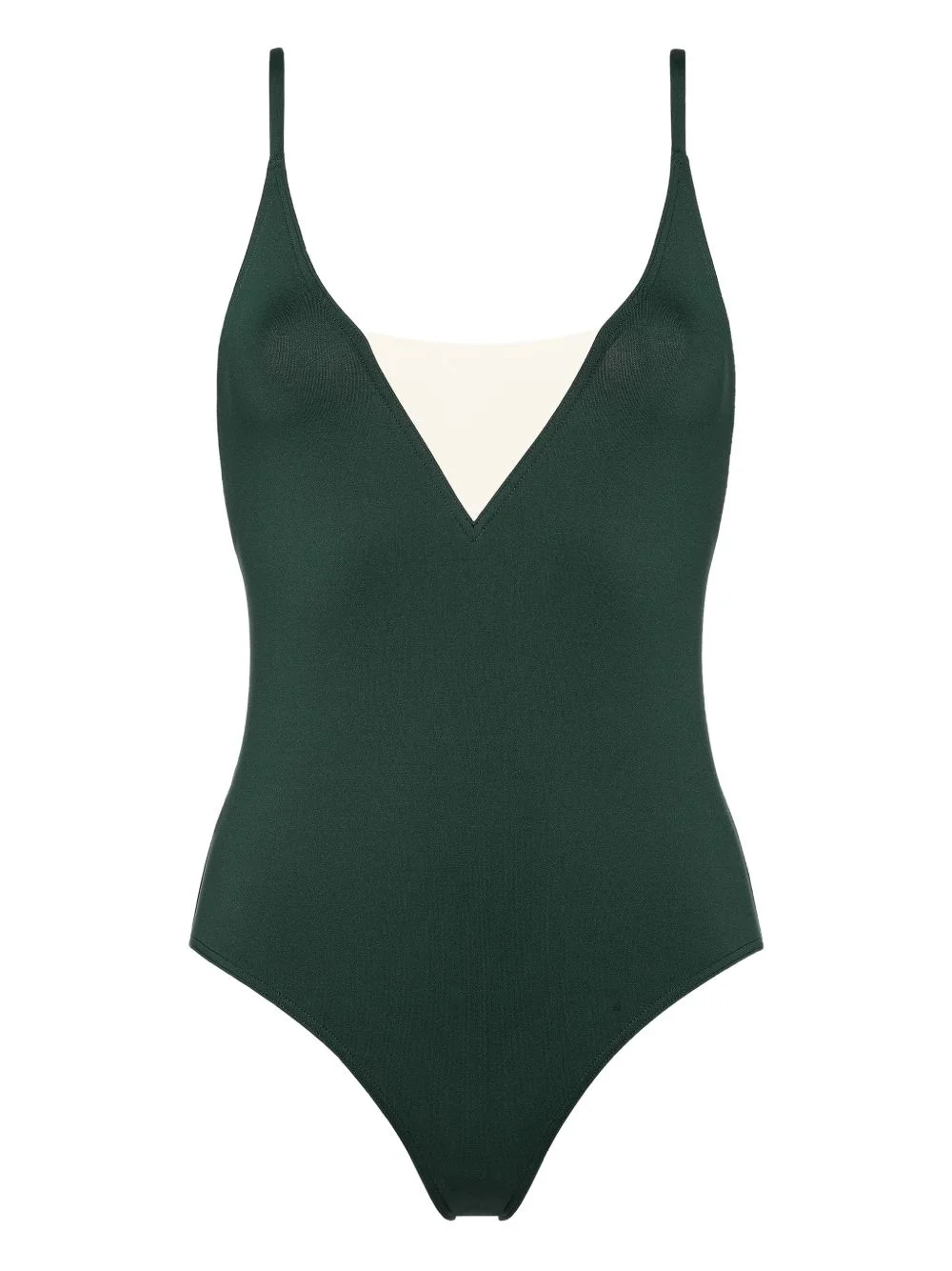Entrevue swimsuit Highlights - Green - Triangular insert - Thin shoulder straps - Be mindful to try on swimwear over your own garments. Made in France Composition Polyamide 84%, Spandex/Elastane 16% Washing instructions Machine Wash