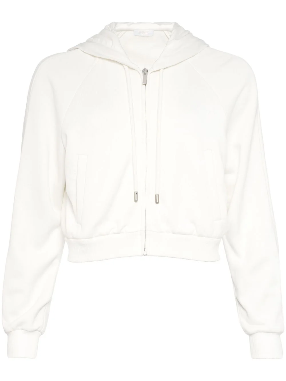 Ese zip-up sweatshirt Highlights - White - Drawstring hood - Front zip fastening - Long sleeves - Ribbed cuffs and hem - Two front welt pockets - Silver-tone hardware Made in Italy Composition Polyamide 62%, Cotton 38%