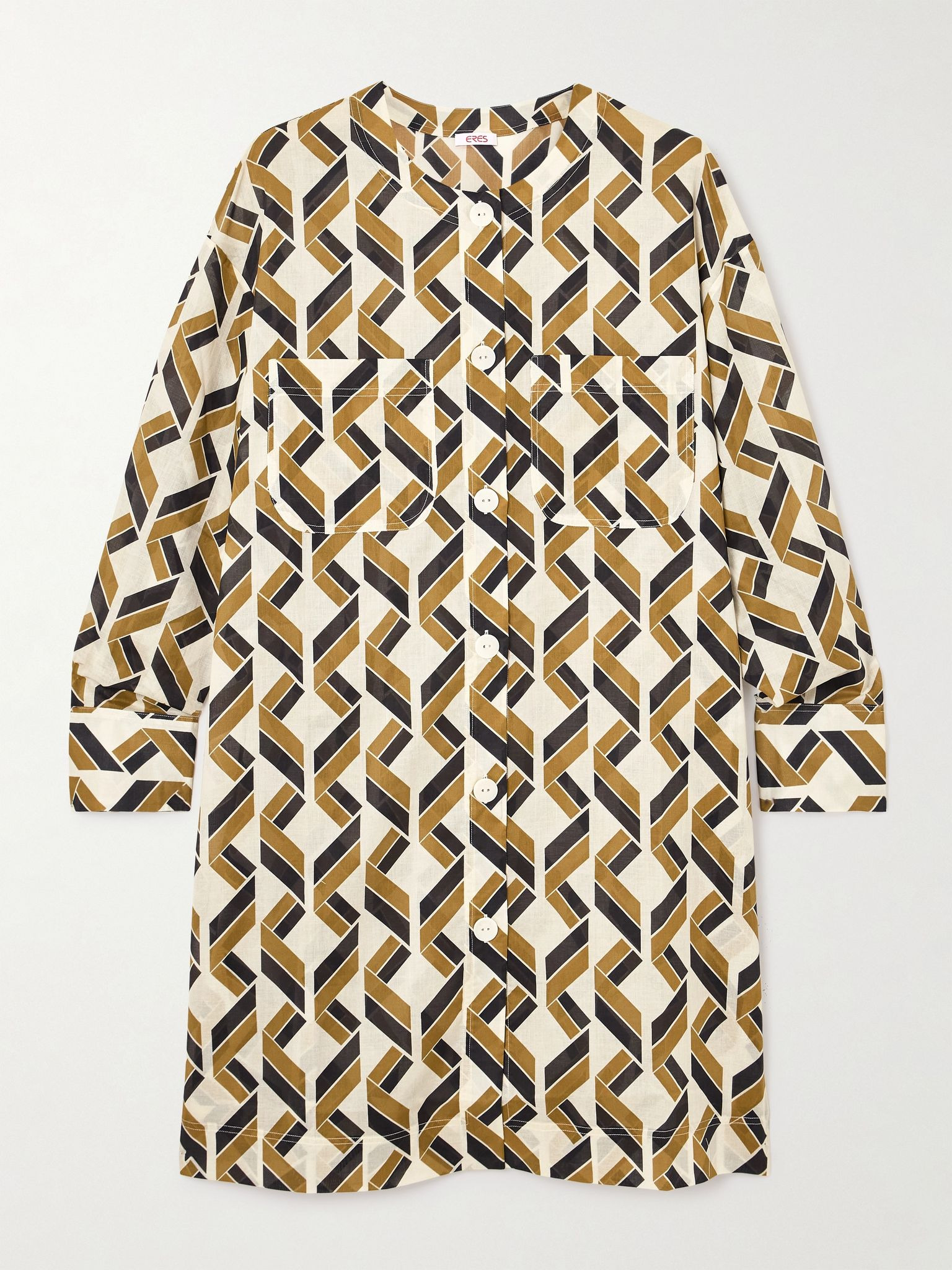 The geometric print on Eres' 'Espace' shirt gives it a distinctly '70s feel. Made from breezy cotton-voile, it has a floaty shape and handy patch pockets. Wear yours at the beach with the matching bikini in our edit. Details & Care - Off-white, black and olive cotton-voile - Button fastenings through front - 100% cotton - Machine wash