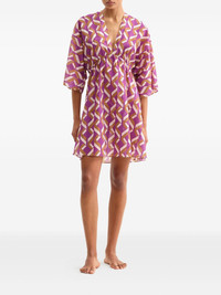 Feel geometric-print dress Highlights - Purple pink - Geometric pattern - Deep v-neck - Elasticised waist - Rear tie fastening Made in France Composition Cotton 100% Washing instructions Machine Wash