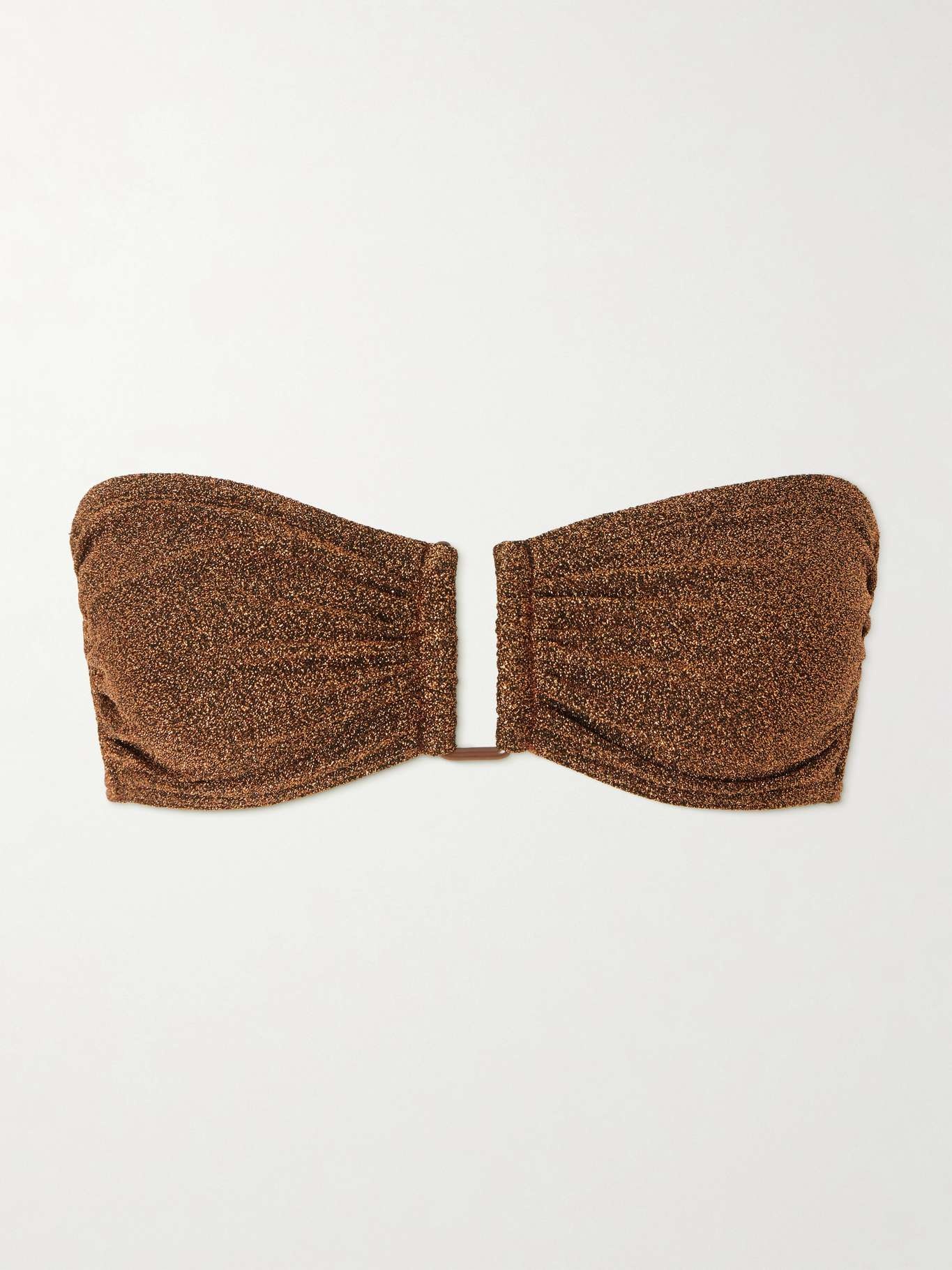 EDITORS'NOTES Eres’ ‘Flamboyant’ bikini top is part of the ‘Irisee’ collection - the way the metallic threads sparkle is inspired by the sun’s rays reflecting on water. It’s made from supportive fabric in a fitted bandeau shape with V-shaped wiring that creates a deep neckline. DETAILS & CARE - Brown stretch polyamide and polyester-blend - 74% polyamide, 21% polyester, 5% elastane - Machine wash - Lotion, sunscreen, oil and chlorine can cause discoloration of this item; this is not a manufacturing defect. Please follow care instructions to keep your swimwear in the best condition