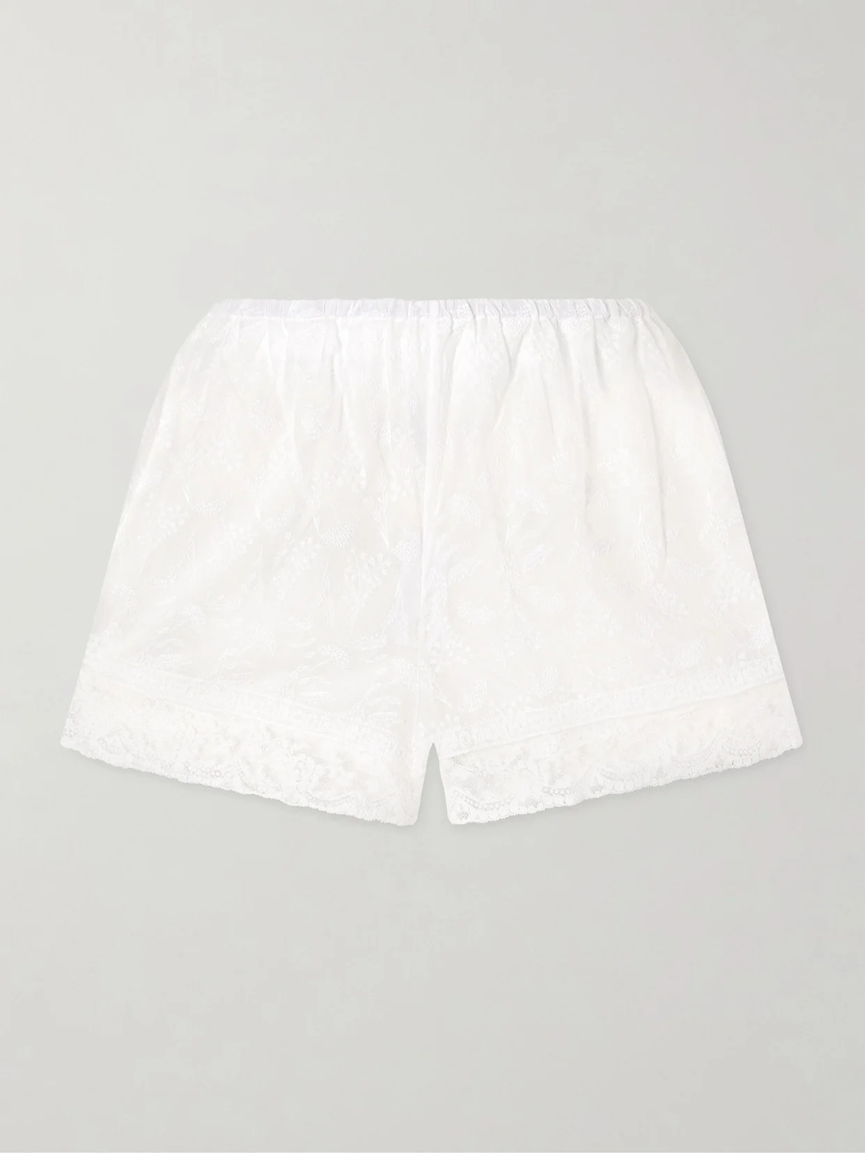 Eres is defined by refined simplicity and impeccable fabrics. These 'Floralie' shorts are cut from airy cotton-voile and embroidered for subtle texture. Delicate lace trims the hem, adding a light, feminine finish.