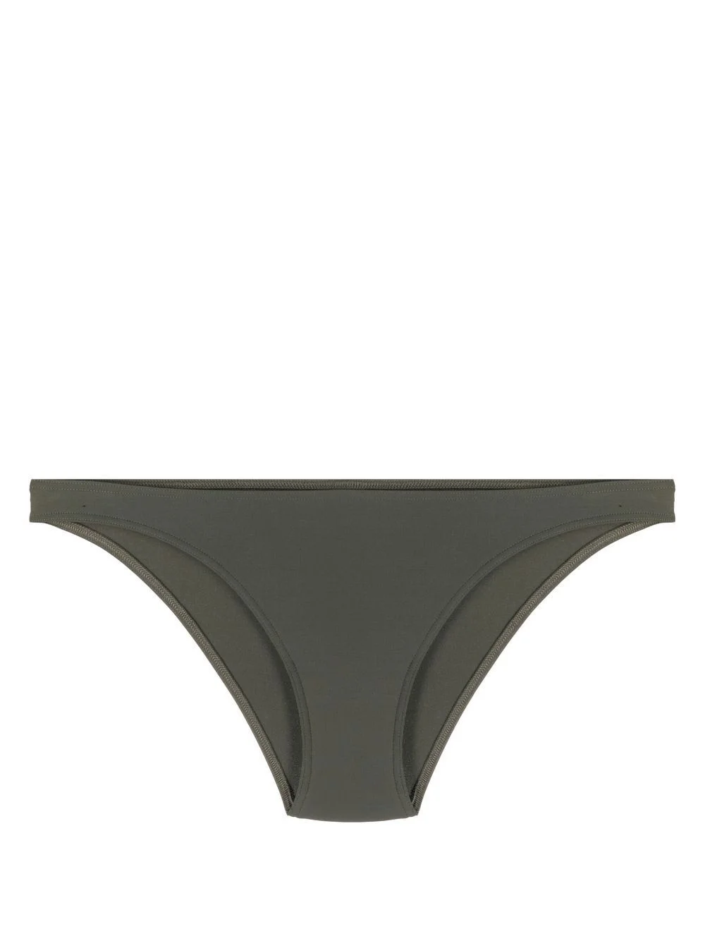 high-cut bikini bottoms khaki stretch-design high cut low-rise medium coverage Be mindful to try on swimwear over your own garments. Made in France Composition Polyamide 77%, Elastane 23% SIZE & FIT FittingInformation Designed to sit at the lower torso, these mid-rise bikini bottoms offer medium coverage This piece fits small – take one size up Measurement WAIST 25.98 in(66 cm) Washing instructions Machine Wash