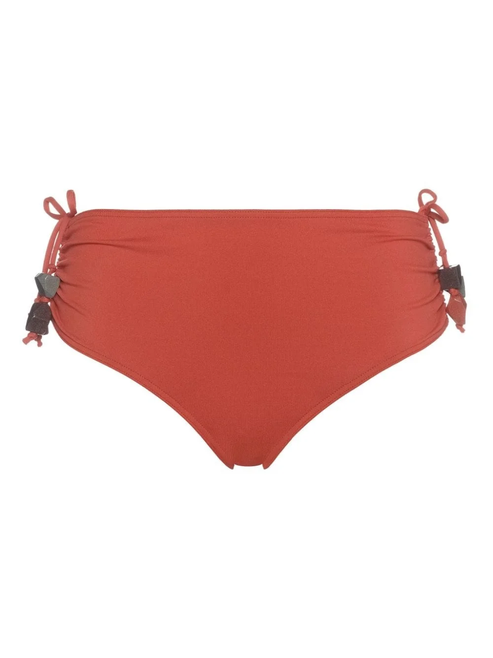 Galilee bikini briefs Highlights - Terracotta brown - Stretch-design - Side-tie bottoms - Bead embellishment - Be mindful to try on swimwear over your own garments. Made in France Composition Polyamide 84%, Spandex/Elastane 16% SIZE & FIT FittingInformation This piece fits small – take one size up Washing instructions Machine Wash