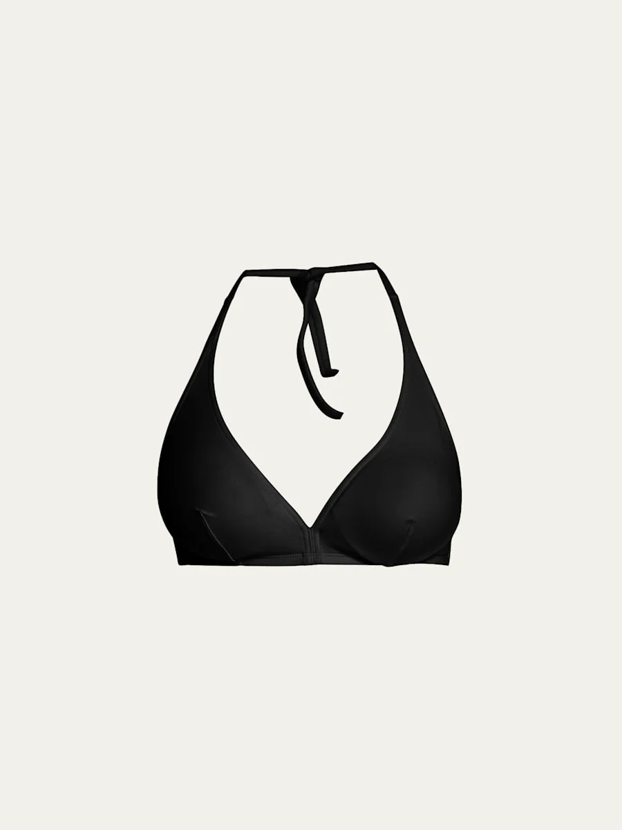 Eres "Gang" solid bikini top. Halter neckline. Fixed triangle cups. Banded under bust. Nylon/spandex. Made in France. Bottoms sold separately. Online Inquiries: BGS21_T8YNR| Store Inquiries: #3429078
