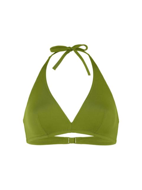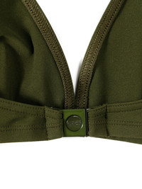 Gang triangle bikini top Highlights - Dark green - Stretch-design - Halterneck - Triangle cup - Rear tie fastening - Rear clasp fastening - Be mindful to try on swimwear over your own garments. Made in France Composition Polyamide 84%, Spandex/Elastane 16% SIZE & FIT FittingInformation The tie fastening gives an adaptable and personalised fit Made from a lightweight stretch fabric, this piece offers elasticity and flexibility when worn This piece fits small – take one size up
