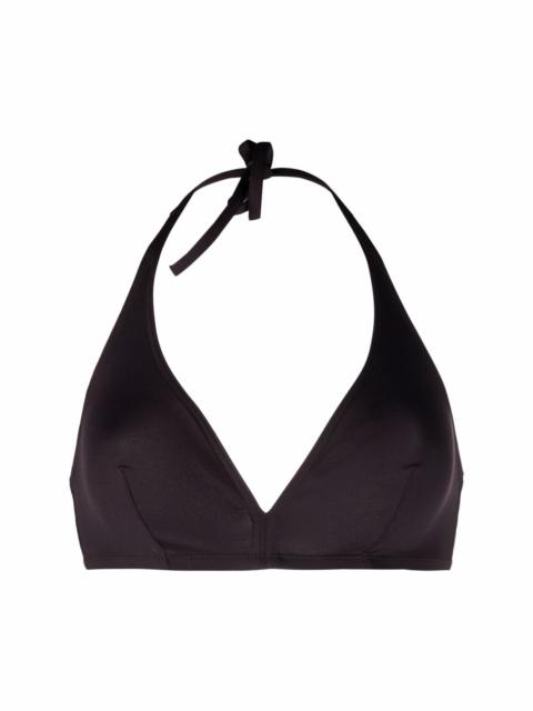 Gang triangle bikini top Brown Gang triangle bikini top from ERES featuring stretch-design, rear tie fastening, V-neck and sleeveless. Be mindful to try on swimwear over your own garments.. Made in France Composition Polyamide 77%, Spandex/Elastane 23%