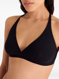 Gang triangle tie bikini top Highlights - Black - Halterneck - Tie fastening - Clasp fastening - Be mindful to try on swimwear over your own garments. Made in France Composition Polyamide 84%, Spandex/Elastane 16% SIZE & FIT FittingInformation The tie fastening gives an adaptable and personalised fit Made from a lightweight stretch fabric, this piece offers elasticity and flexibility when worn This piece fits small – take one size up Washing instructions Machine Wash