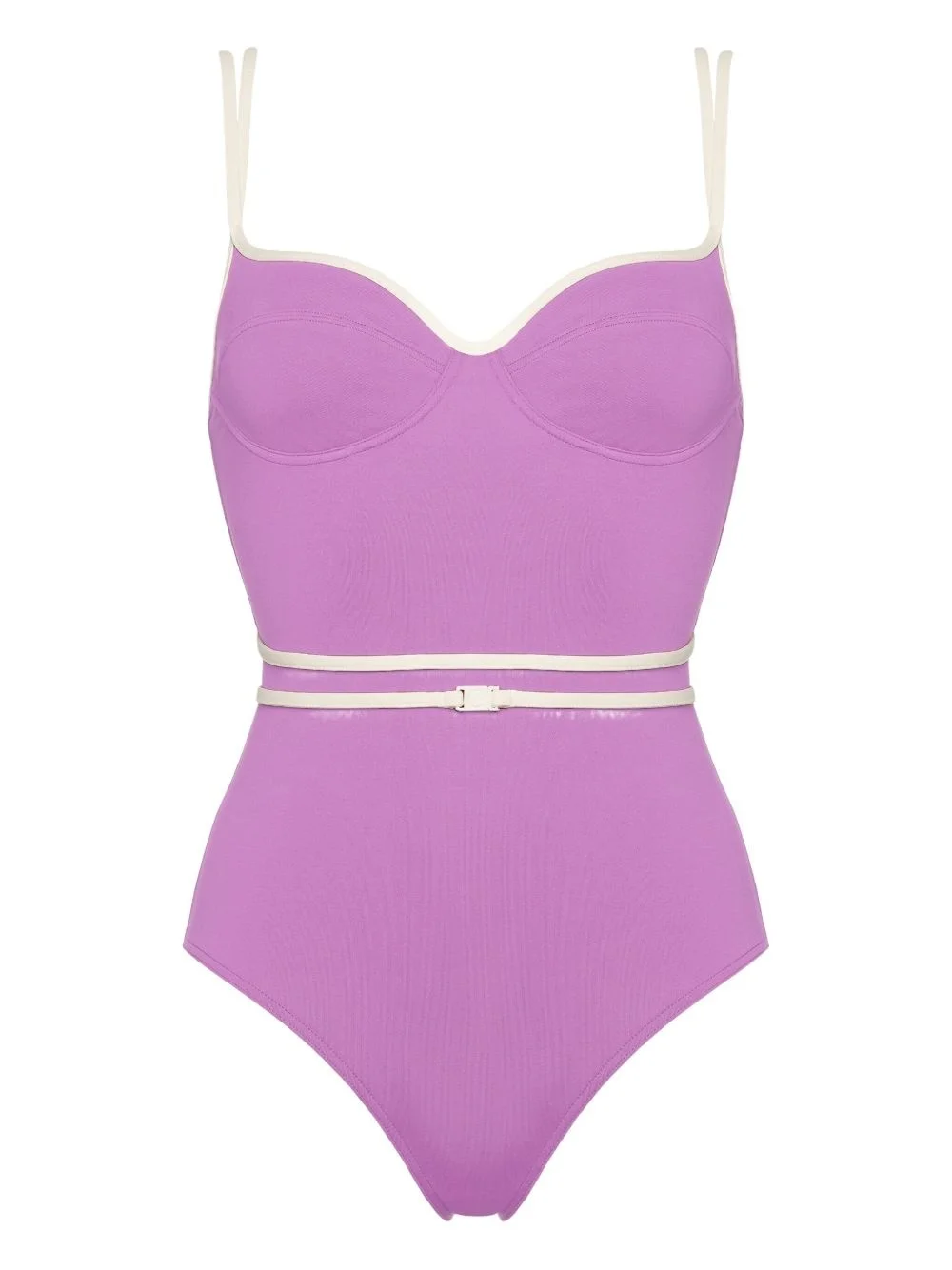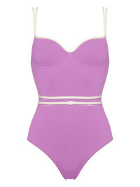 Gia swimsuit Highlights - Lilac purple - Shoulder straps - Contrast trim - Belted detail - Padded cups - Be mindful to try on swimwear over your own garments. Made in Italy Composition Polyamide 77%, Spandex/Elastane 23% SIZE & FIT FittingInformation This piece fits small – take one size up Washing instructions Machine Wash