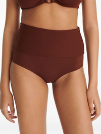 Gredin bikini briefs Highlights - Brown - High-waisted bottoms - Full lining - Be mindful to try on swimwear over your own garments. Made in France Composition Polyamide 84%, Spandex/Elastane 16% SIZE & FIT FittingInformation This piece fits small – take one size up Washing instructions Machine Wash