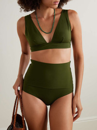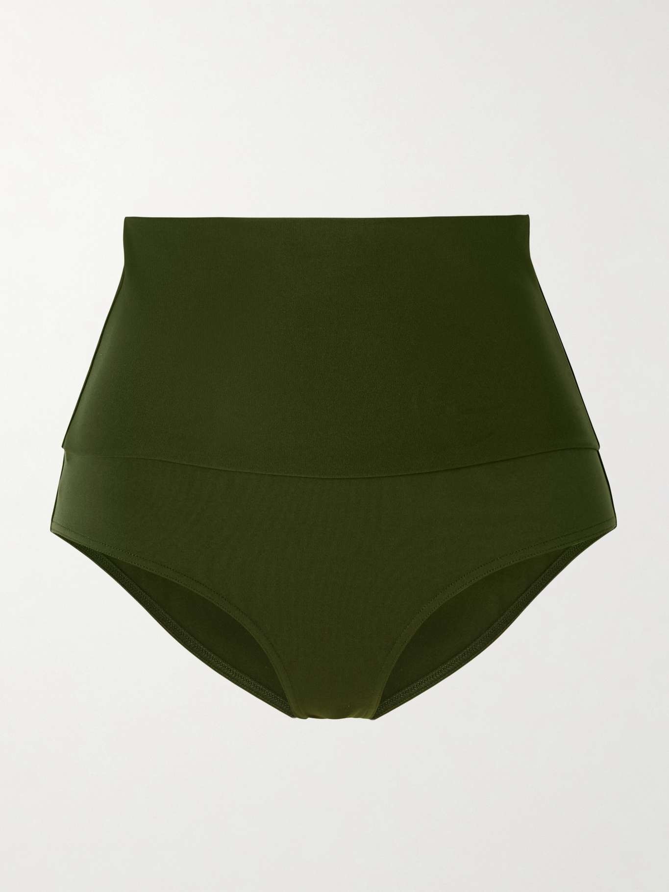 EDITORS'NOTES Eres' 'Les Essentiels' bikini briefs flatter pretty much every body type. Made from the label's sculpting peau douce fabric, they have a high-rise waist with full coverage. Pack them for active vacations with one of the matching tops. SIZE & FIT Model measurements: - Fits true to size, however those who are between sizes should take the larger size - High-rise briefs with full coverage - Model is 175cm/ 5'9" and is wearing a FR 38 - Bust: 79cm/ 31" - Waist: 66cm/ 26" - Hip: 89cm/ 35 DETAILS & CARE - Army-green stretch-polyamide - Pull on - 84% polyamide, 16% elastane - Machine wash - Designer color: Moss Green - Lotion, sunscreen, oil and chlorine can cause discoloration of this item; this is not a manufacturing defect. Please follow care instructions to keep your swimwear in the best condition Small to size. See Size & Fit notes.