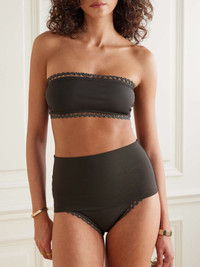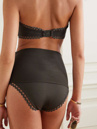 EDITORS'NOTES Eres' 'Hit' bikini briefs are made from the label's sculpting <i>peau douce<i> fabric. It has a retro-inspired high-waist silhouette that offers full coverage and is traced with ric rac-trims along the thighs. Wear yours with the coordinating top. SIZE & FIT - Fits small to size, take one size larger than normal - High-rise briefs with full coverage - Model is 175cm/ 5'9" and is wearing a FR 38 DETAILS & CARE - Anthracite stretch-polyamide - Pull on - 84% polyamide, 16% elastane - Machine wash - Lotion, sunscreen, oil and chlorine can cause discoloration of this item; this is not a manufacturing defect. Please follow care instructions to keep your swimwear in the best condition Small to size. See Size & Fit notes.